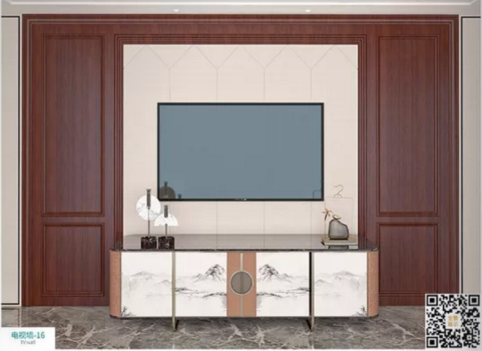 廠價新款鑫順來DQ-16掃碼中式電視墻,掃二維碼看裝修風格